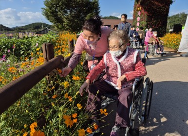 가을의 길목에서 입소 어르신들과 보호자님을 모시고 "나눔숲 정원 나들이"라는 주제로 가족지지 프로그램을 진행하였습니다.정자..